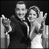 Voices be damned, all the truth needed can be read on the faces of Jean Dujardin and Bérénice Bejo, their give-and-take as George Valentin and Peppy Miller as deliciously, sincerely, sweepingly transcendent as any romance this year. Sharing a remarkable resemblance to Clark Gable and the suave poster-boy looks of every male idol of Old Hollywood combined, Dujardin is able to shine with charisma and remain wholly masculine even when his guard is let down and vulnerability creeps through. He's full of gusto, but also introspectiveperfect for inhabiting George Valentin, who begins the film at the top and can scarcely recognize himself by the time he's selling off all his possessions ("Congratulations, it's all sold. You have nothing left!" the auctioneer tells him) and having to fire his valued assistant and chauffeur Clifton (James Cromwell) because he hasn't the money to pay him.